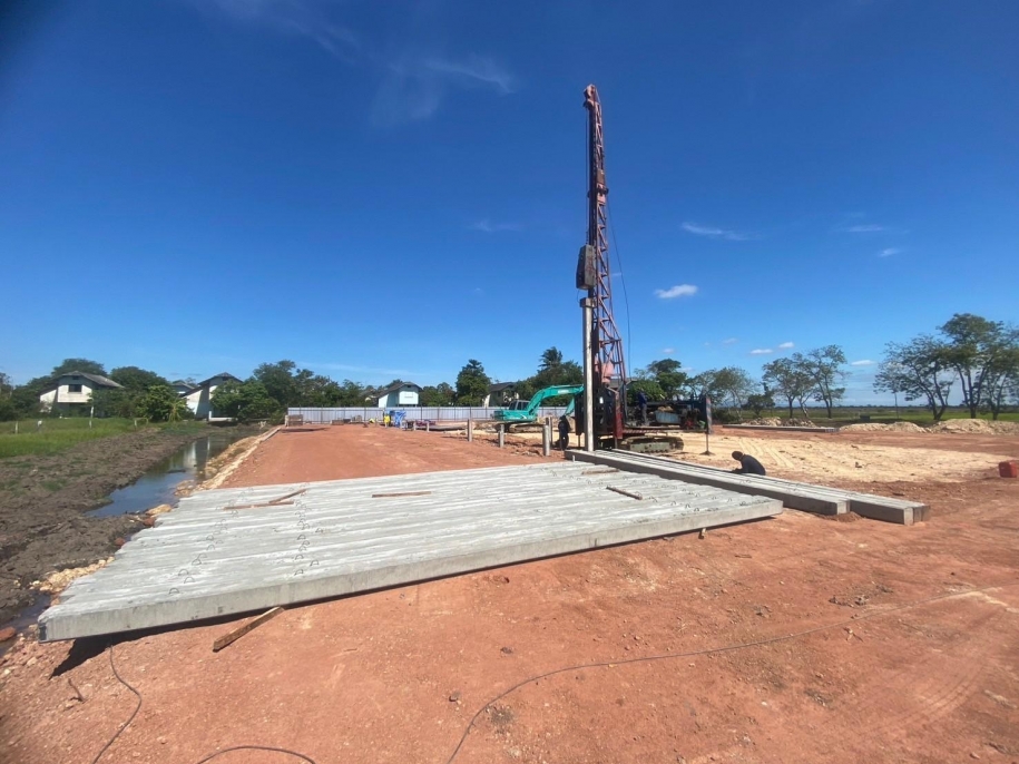 งานก่อสร้างอาคารโรงคลุม ศูนย์วิจัยข้าวปราจีนบุรี